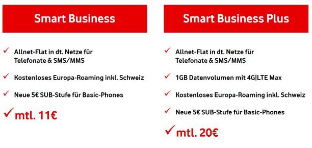 Die Leistungen der beiden Tarife orientieren sich an dem schon bekannten Business Allnet bzw. Red Business Basic.