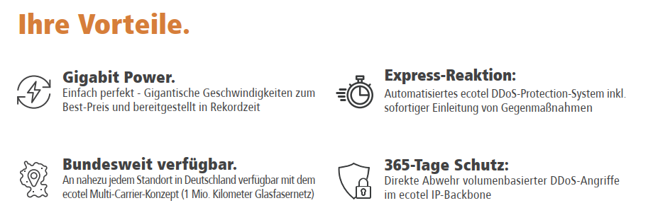 Sichern Sie sich noch heute Ihren neuen Glasfaser-Anschluss von Ecotel und profitieren Sie noch bis zum 30.06.2022 von den Gigabit-Power-Anschlüssen zu tollen Sonderkonditionen.