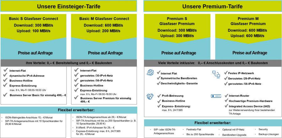 Weitere Produktvarianten, Bandbreiten & Preise erhalten Sie selbstverständlich auf Anfrage oder in einem persönlichen Beratungsgespräch!