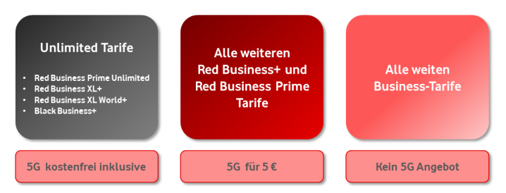 Alle Kunden mit Red Business Prime- und/oder Red Business+ -Tarifen, können eine 5G-Option für nur 5,00 € netto pro Monat zubuchen.